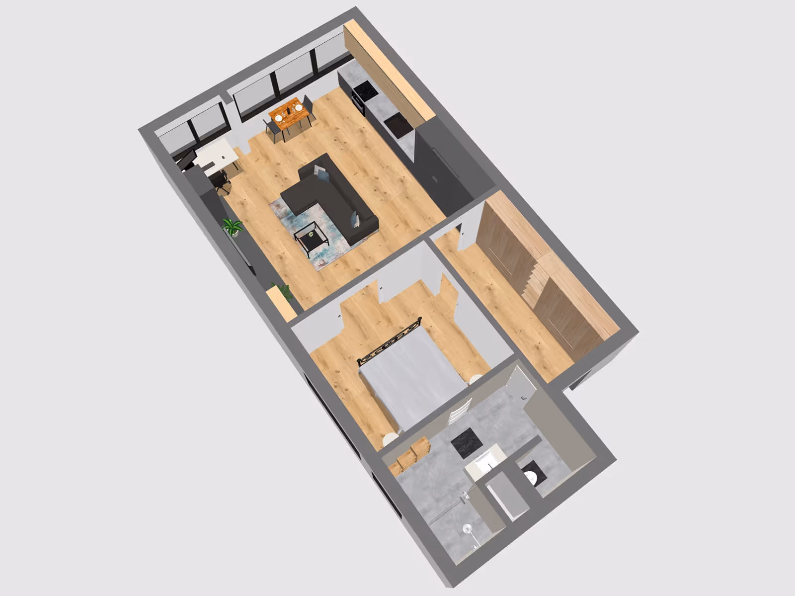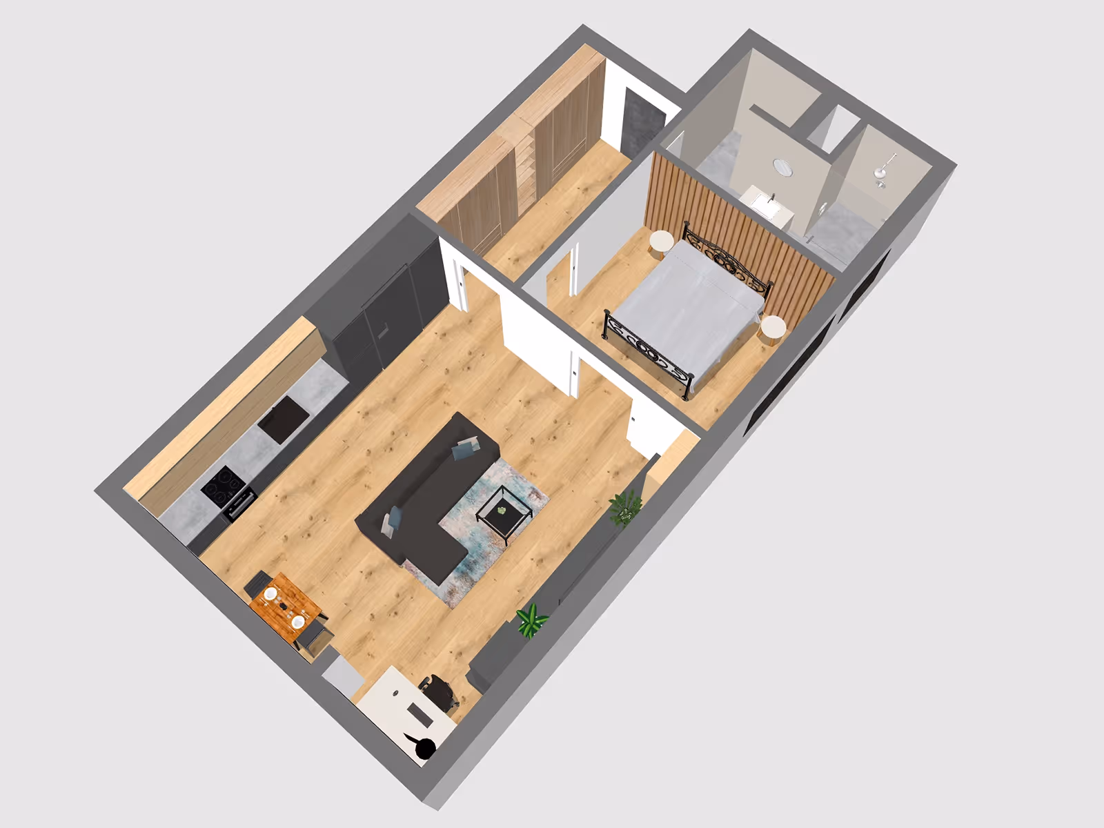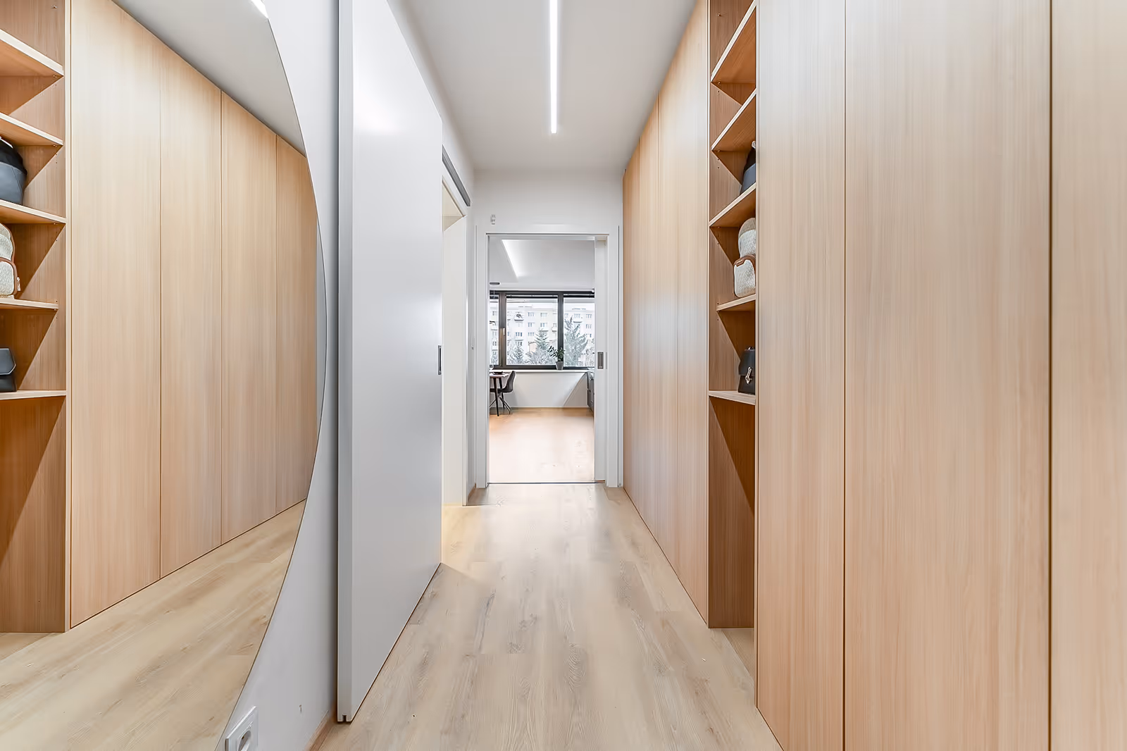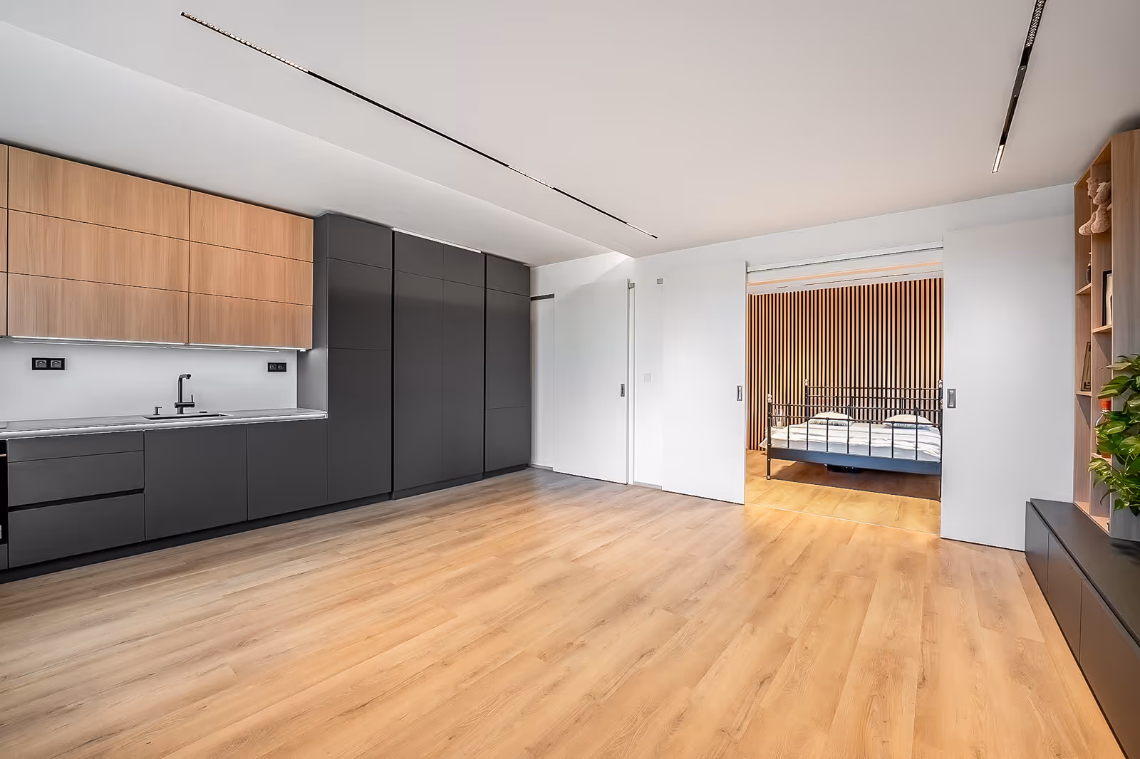 Byt je navržen tak, aby vám poskytl maximální pohodlí a zlepšil váš každodenní život. Je zde instalováno chytré osvětlení, díky kterému budou vaše každodenní činnost daleko jednodušší a efektivnější. Když si sednete ke stolu, světlo se automaticky zapne a jakmile si lehnete do postele, samo se ztlumí. Při příchodu k zrcadlu se světlo rozsvítí, abyste měli ideální podmínky na přípravu. Adaptivní osvětlení se dokáže přizpůsobit vašemu dennímu rytmu. Díky těmto funkcím už nebudete muset na vypínače ani sáhnout. Světla reagují na pohyb a automaticky se přizpůsobují denní době.