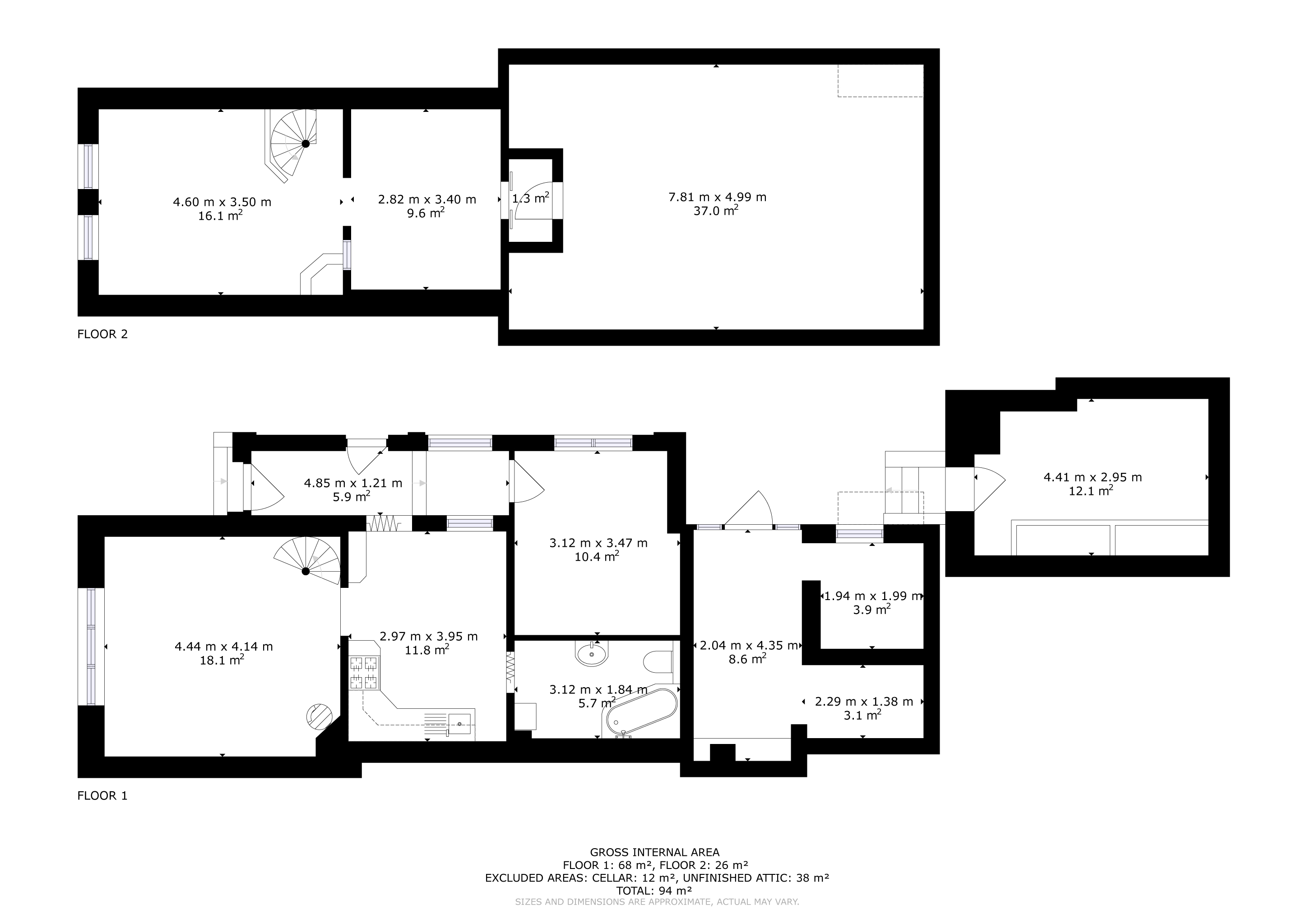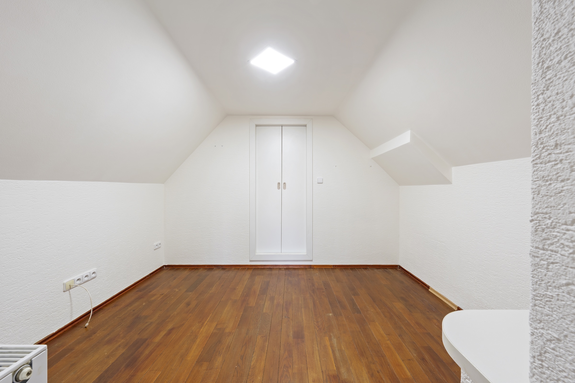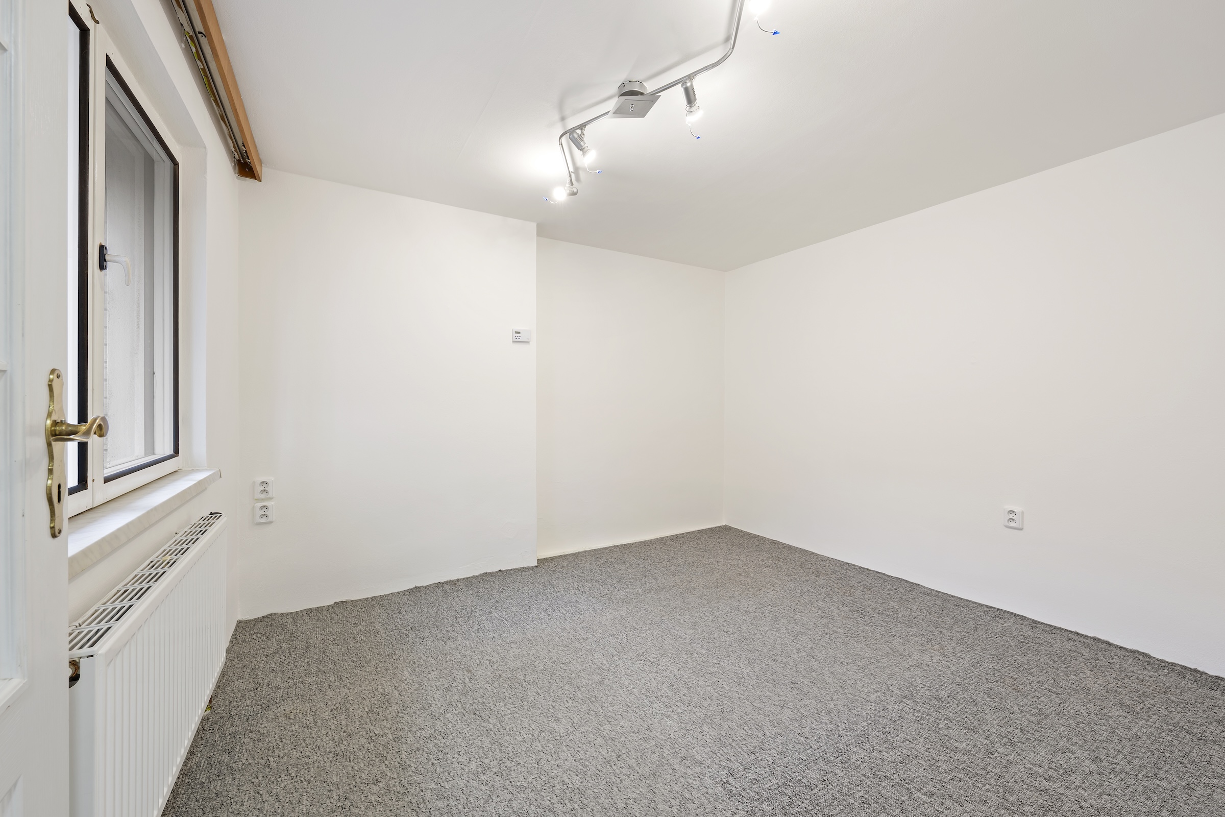 Odtud vede točité schodiště do podkroví, kde se nachází další místnost vhodná například jako ložnice, pracovna nebo pokoj pro hosty. Na ni navazuje další prostor, který lze využít například jako šatnu nebo menší pokoj.